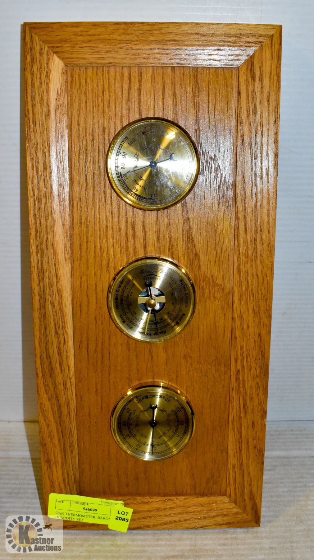 OAK THERMOMETER, BAROMETER, HUMIDITY SET