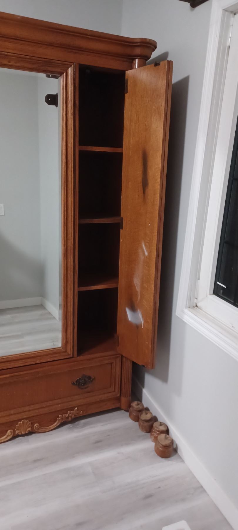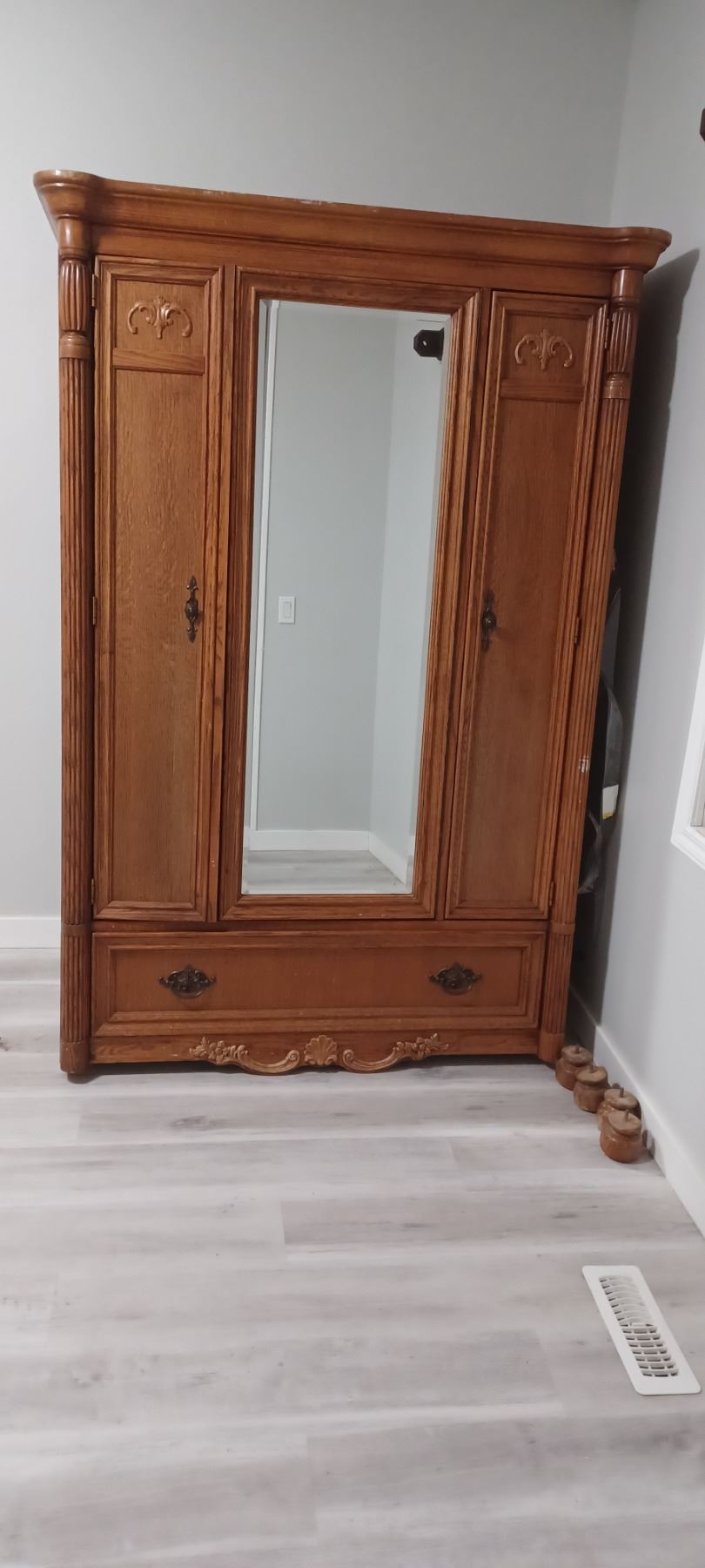 OAK TV STAND WITH MIRROR AND BOTTOM DRAWER 48"X 19"WX 73"H