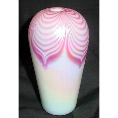 Here is a beautiful Mt St Helens vase in pink and white with the pink feathered down about halfway through the vase. It is in very good condition with no chips or cracks. CAB 6