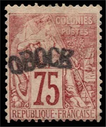 1892 French Colonies general issue curved handstamped OBOCK 75c carmine/rose (SG 10), unused o.g., off-centre as often, two light horiz creases (one from heavy hinge remainder) and surface rub at top, various handstamps/signatures on reverse, scarce, Yver