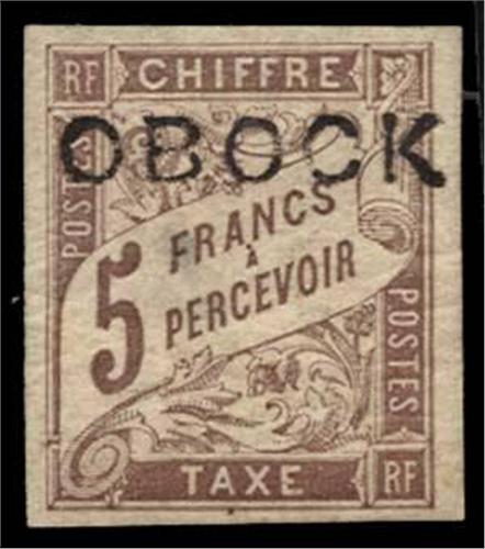Postage Due: 1892 5f brown local ovpt Type 2 (SG D38), part o.g., small gum thin from hinge removal and light diagonal bend, but scarce. Yvert T18 €570. RPS Cert (2004)