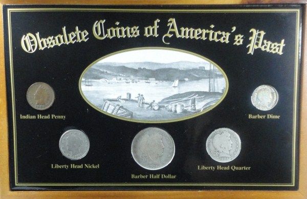 SET INCLUDES: 1901 INDIAN CENT, 1904 LIBERTY NICKEL, 1902 BARBER DIME, 1904 LIBERTY HEAD QUARTER AND A 1904 BARBER HALF, EST. $35.00 TO $40.00