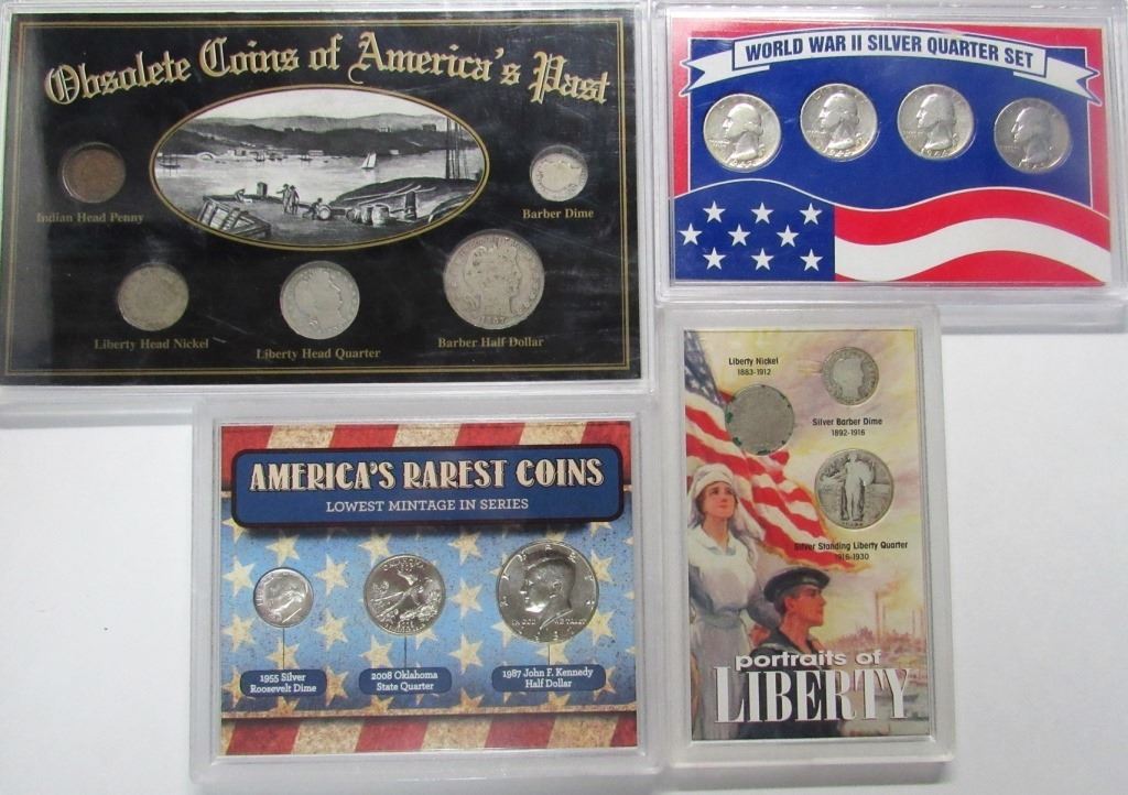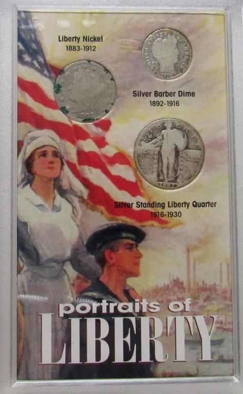 5 COIN SET; PORTRAITS OF LIBERTY 3 PC SET; WWII QTR SET; AM LOWEST MINTAGE SER 3 PC SET