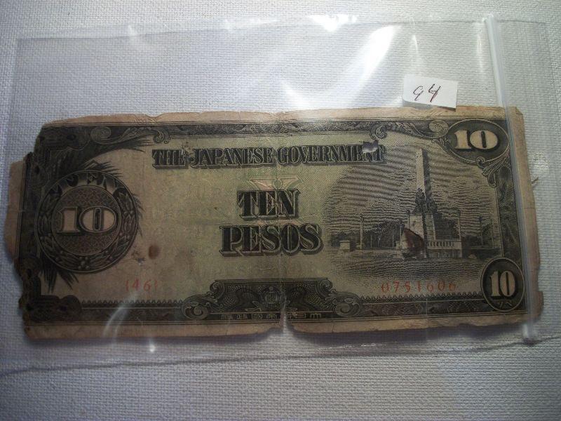 1940s-1950s JAPANESE GOVERMENT 10 PESOS