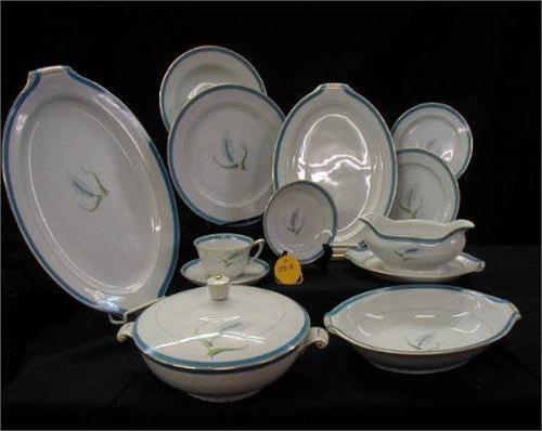 OCCUPIED CHINA KINGSLEY NARUMI CHINA inSONATAin SETTING FOR 10 INCLUDES (11) 10in DINNER PLATES, (9) 8 1/2in SOUP BOWLS, (11) 7 1/2in BREAD PLATES, (12) 6 5/8in PLATE, (10) SAUCERS, (11) 5 3/8in SIDE BOWLS, (7) CUPS, (1) DBL. SPOUT GRAVY BOAT, (1) 11in OVAL SER