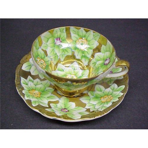 EXQUISITE TEA SET, DECORATED BY HAND - THE CUP IS WIDE OPEN AND DECORATED INSIDE AND OUT AND STANDS ON A GOLD GILTED PEDESTAL, EXCELLENT CONDITION FREE OF CHIPS OR CRACKS, US BUYER PLEASE PAY 6.00 FOR SHIPPING PLUS INSURANCE.THANK YOU!