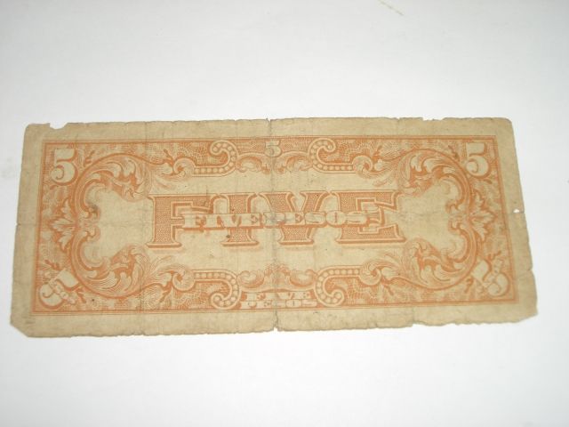 OCCUPIED JAPANESE 5 FIVE PESOS!! ***Coin, Currency Grades, Conditions and Values are not Northern Colorado Estate Liquidators Responsibilty. Grades, Condition and Values are determined by Consigner(s) & Buyers ONLY***