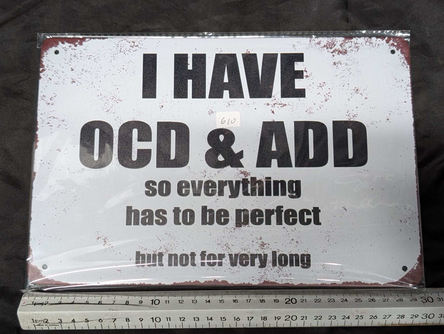 OCD + ADD Tin Sign Approx. 8"x11 3/4"
