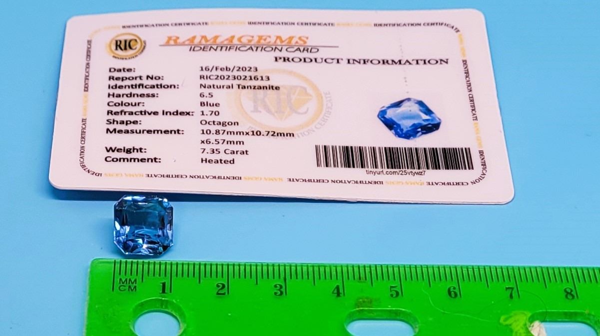 TANZANITE GEMSTONE AND INFORMATION CARD, READY FOR SETTING. JEWELLERY