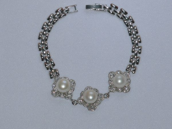 OCTAGON CZ WHITE PEARL SILVER BRACELET***METAL: SILVER; **|**|** OCTAGON CZ WHITE PEARL SILVER BRACELET***METAL: SILVER; APPROXIMATELY 10GRAMS 8-INCH ; MSRP: $200