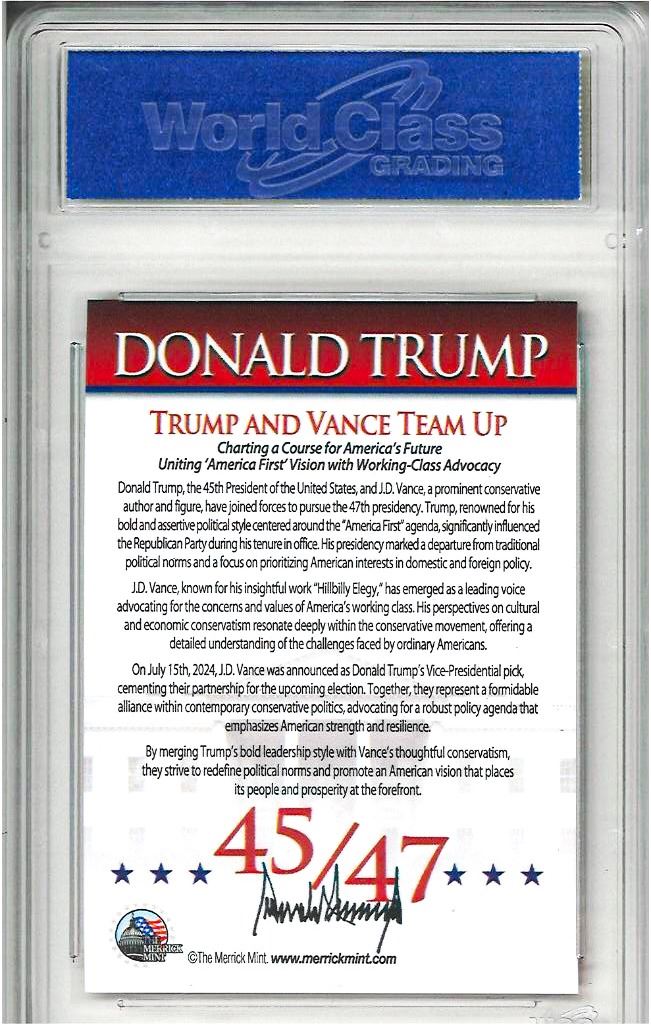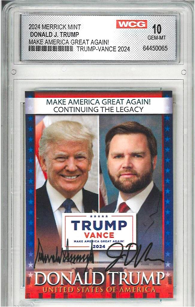 OE - President DONALD TRUMP and JD VANCE Official Election Photo Trading Card Graded 10 WCG