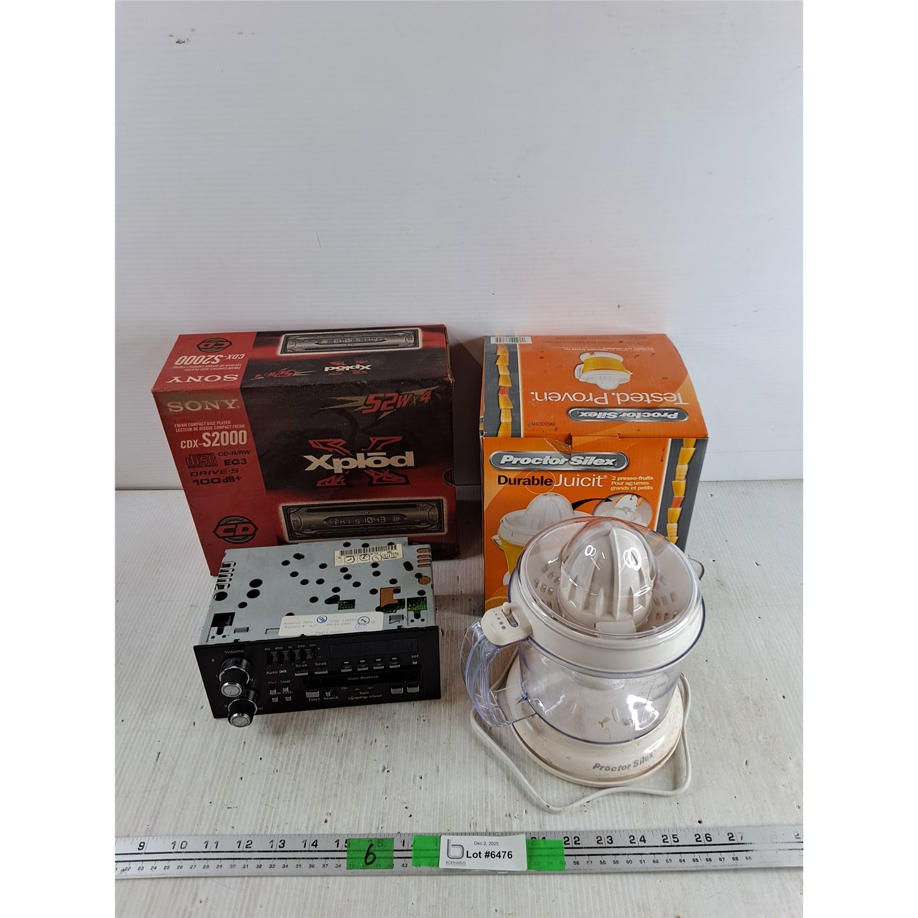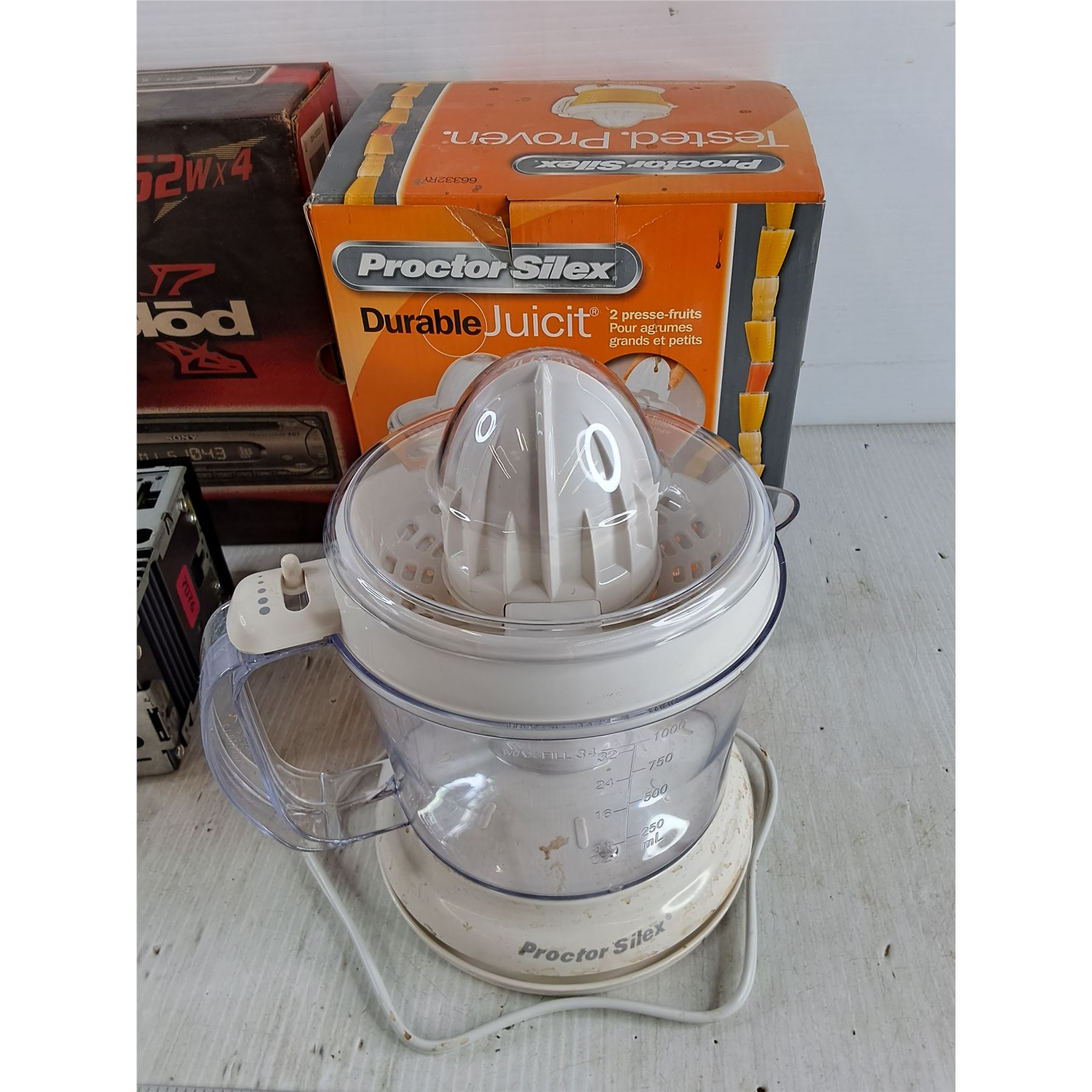 OEM Radio - As Is, Electric Proctor Silex Juicer - Tested, Empty Sony Radio Box