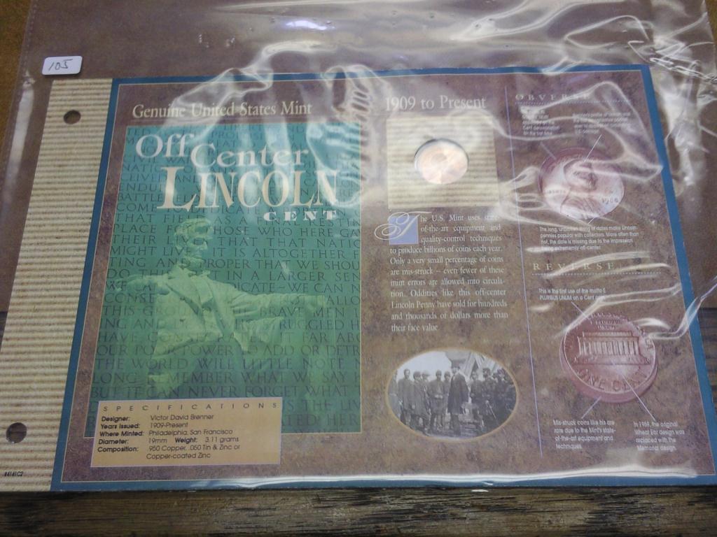 OFF CENTER LINCOLN CENT (AS SHOWN)