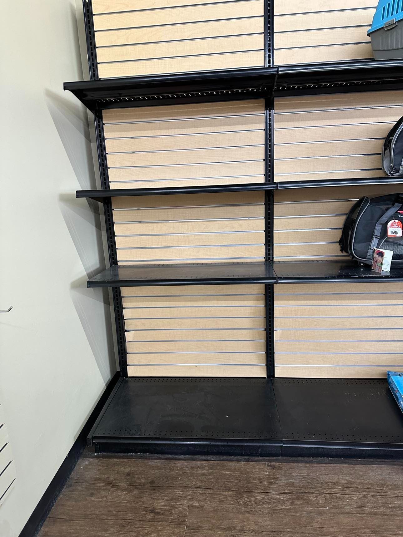 WITH THIRTY 3' METAL BLACK SHELVES. *ATTENTION THIS UNIT IS LOCATED AT 4125-50 AVE ST PAUL, T0A 3A0, BUYER IS RESPONSIBLE FOR REMOVAL OF ASSETS. ASSETS MUST BE REMOVED BY TUESDAY, NOVEMBER 28TH.