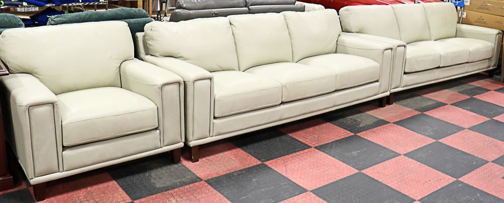 OFF WHITE GENUINE LEATHER SOFA, LOVESEAT & CHAIR
