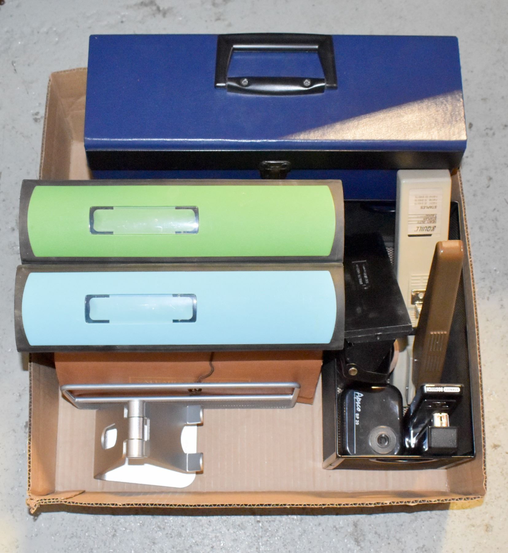 TABLET STAND; BINDERS; EXPANDING ORGANIZERS; HOLE PUNCH; STAPLERS; PENCIL SHARPENER; PEN CUP; MESH CADDY