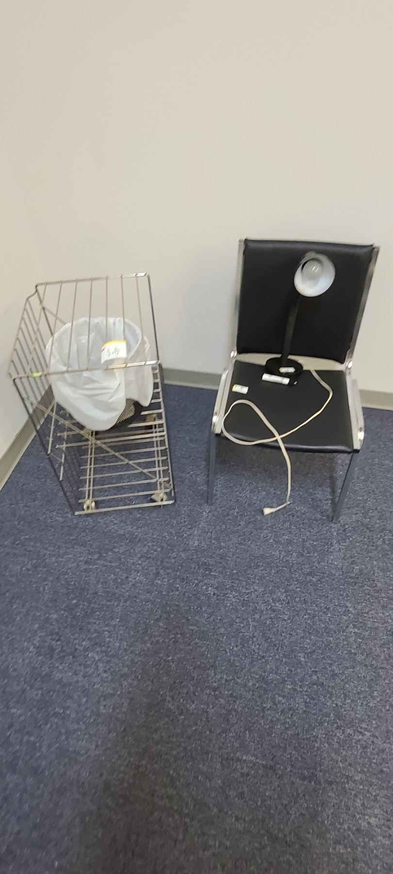 OFFICE CHAIR AND METAL RACK, TRASH CAN