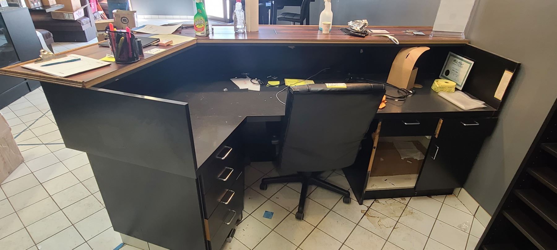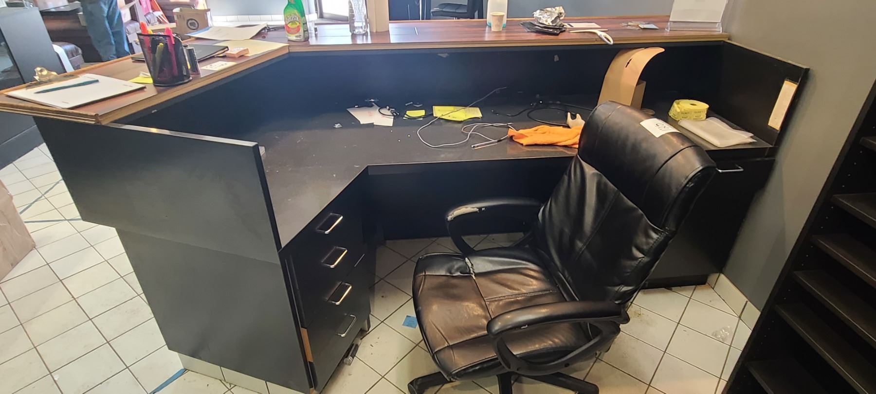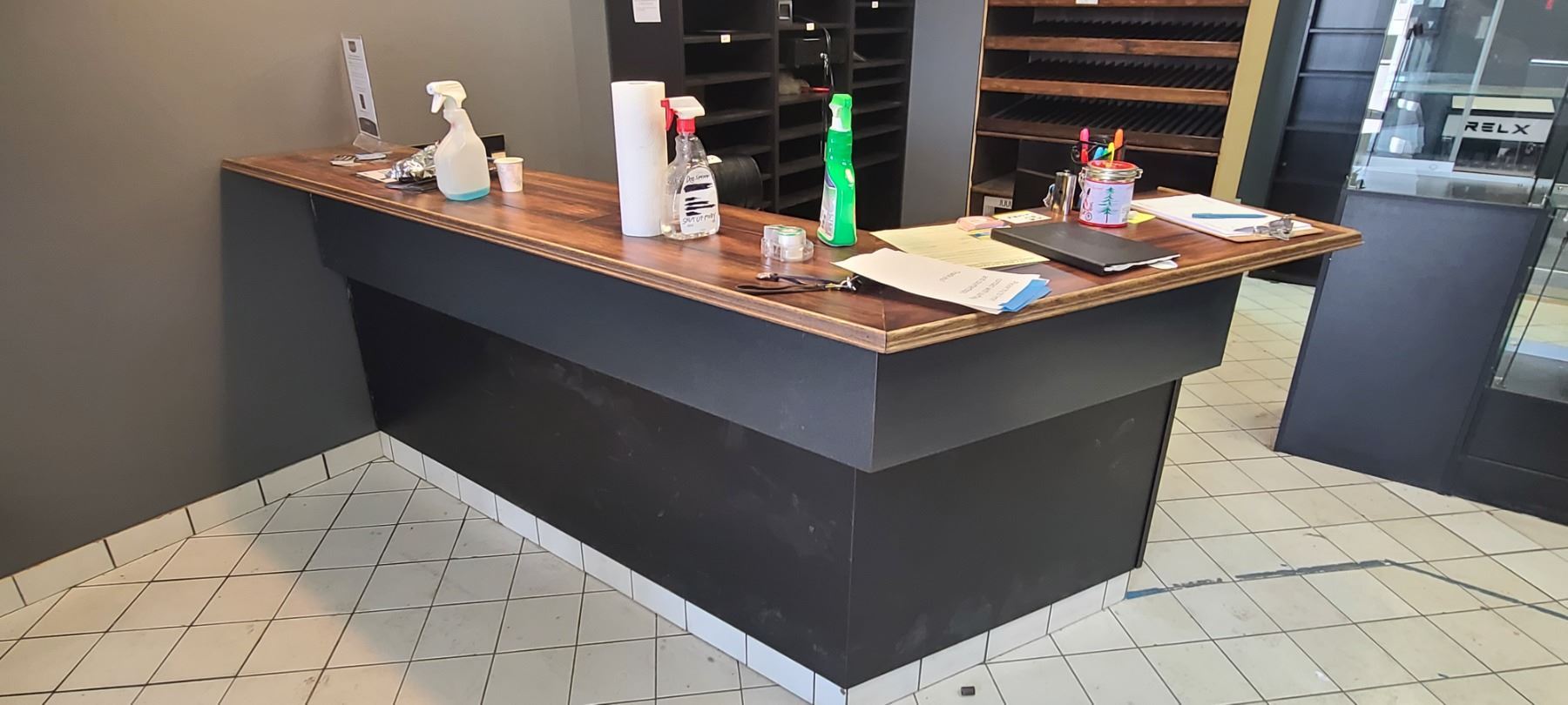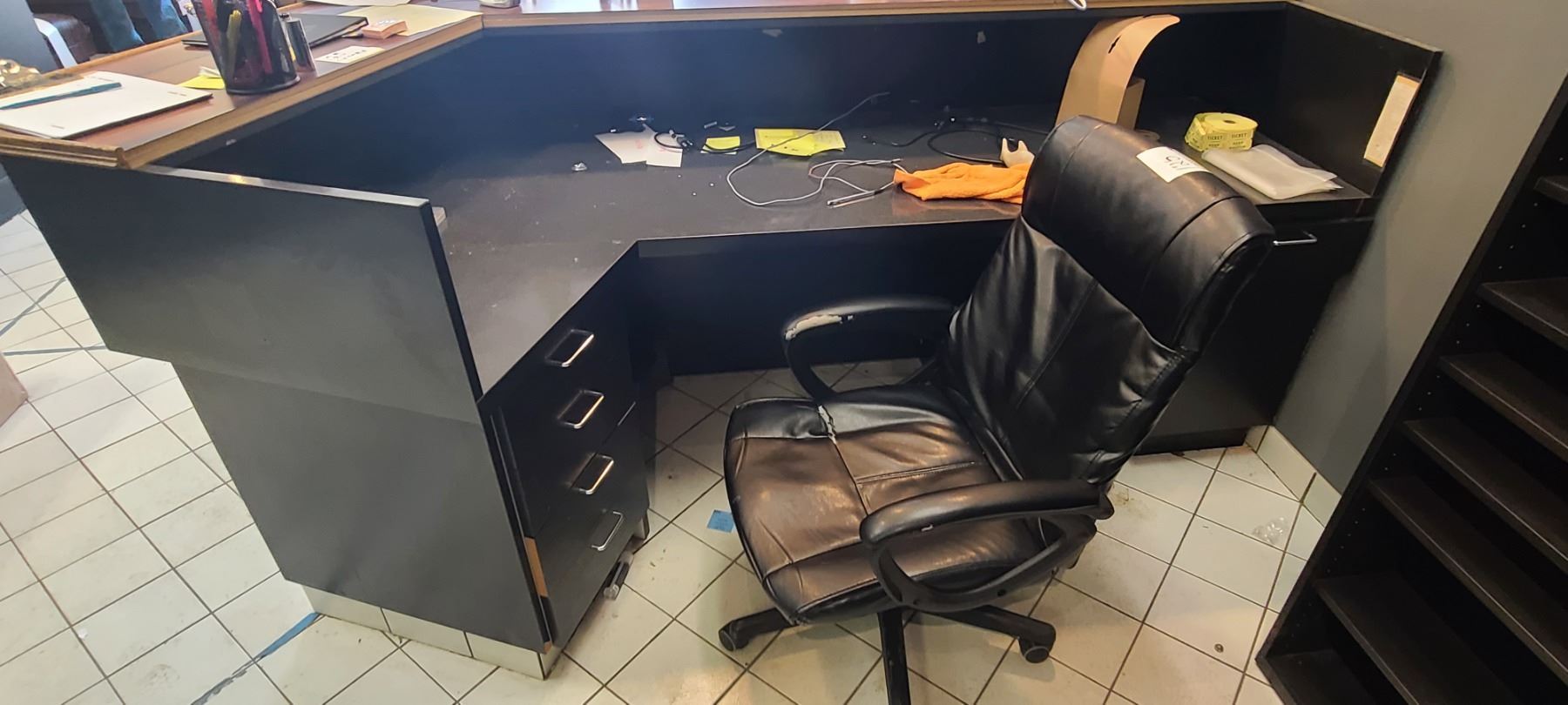 OFFICE CHAIR AND SALES COUNTER. LOCATED IN ST. ALBERT