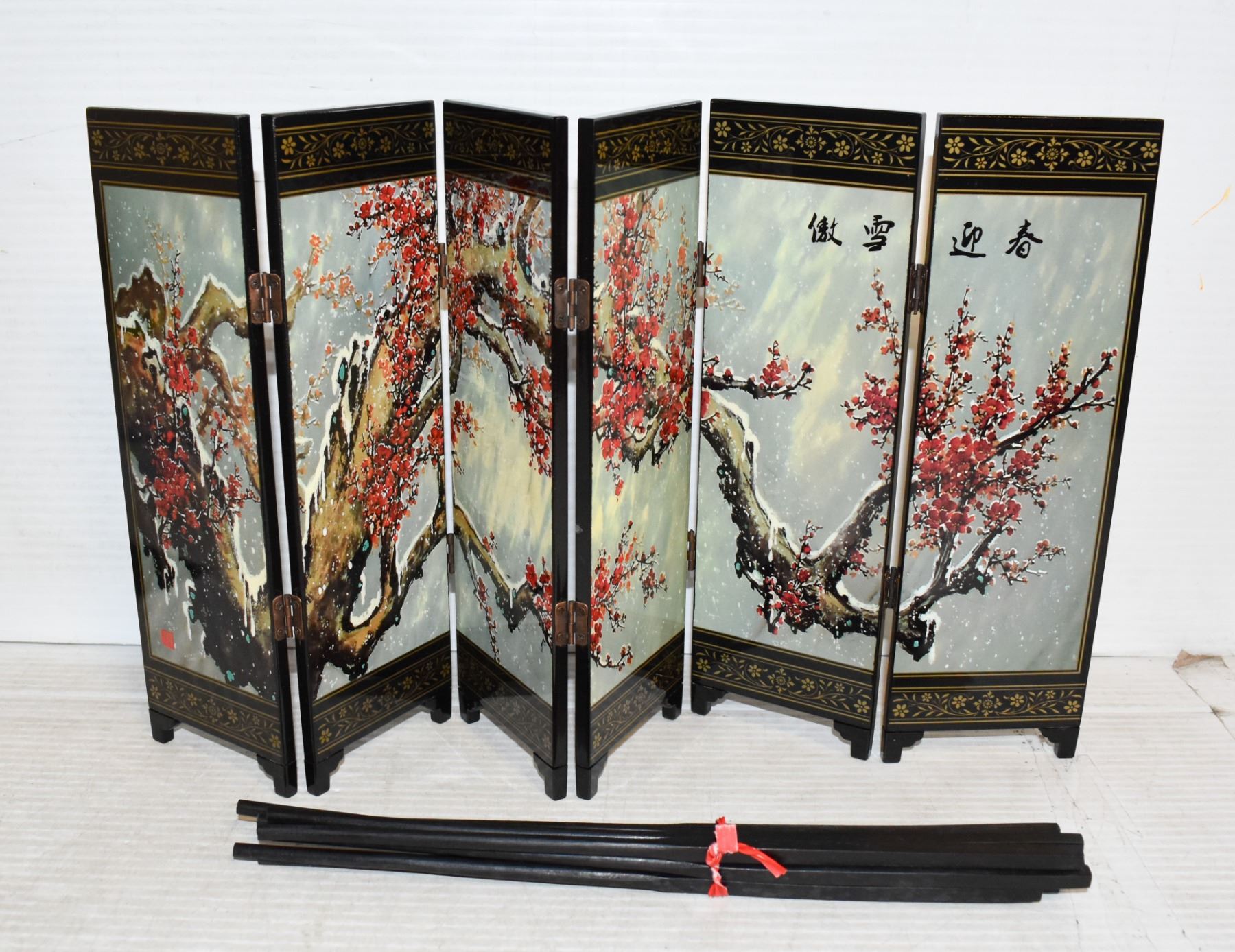 10 INCH HIGH IMITATION OF AN ANCIENT SCREEN. WITH CHOP STICKS 8 PLASTIC