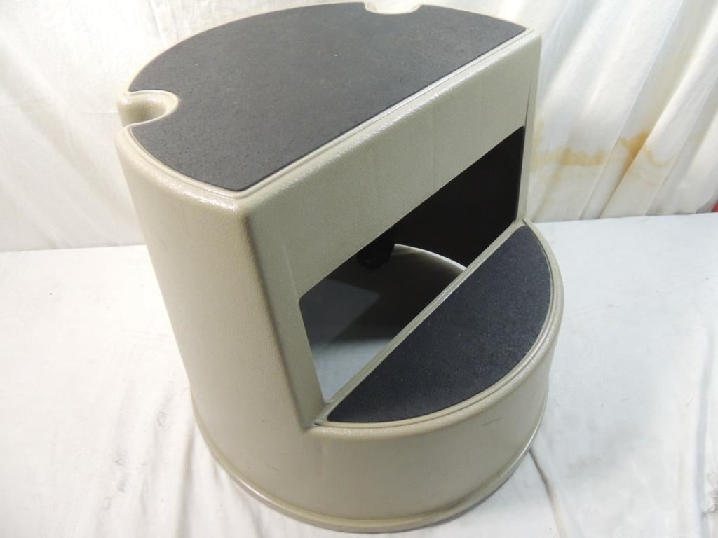 SAFETY STOOL, ROLING STOOL, STURDY AND DOESN'T MOVE WHEN STANDING ON. AS SHOWN SEE PHOTO FOR MORE DETAILS.