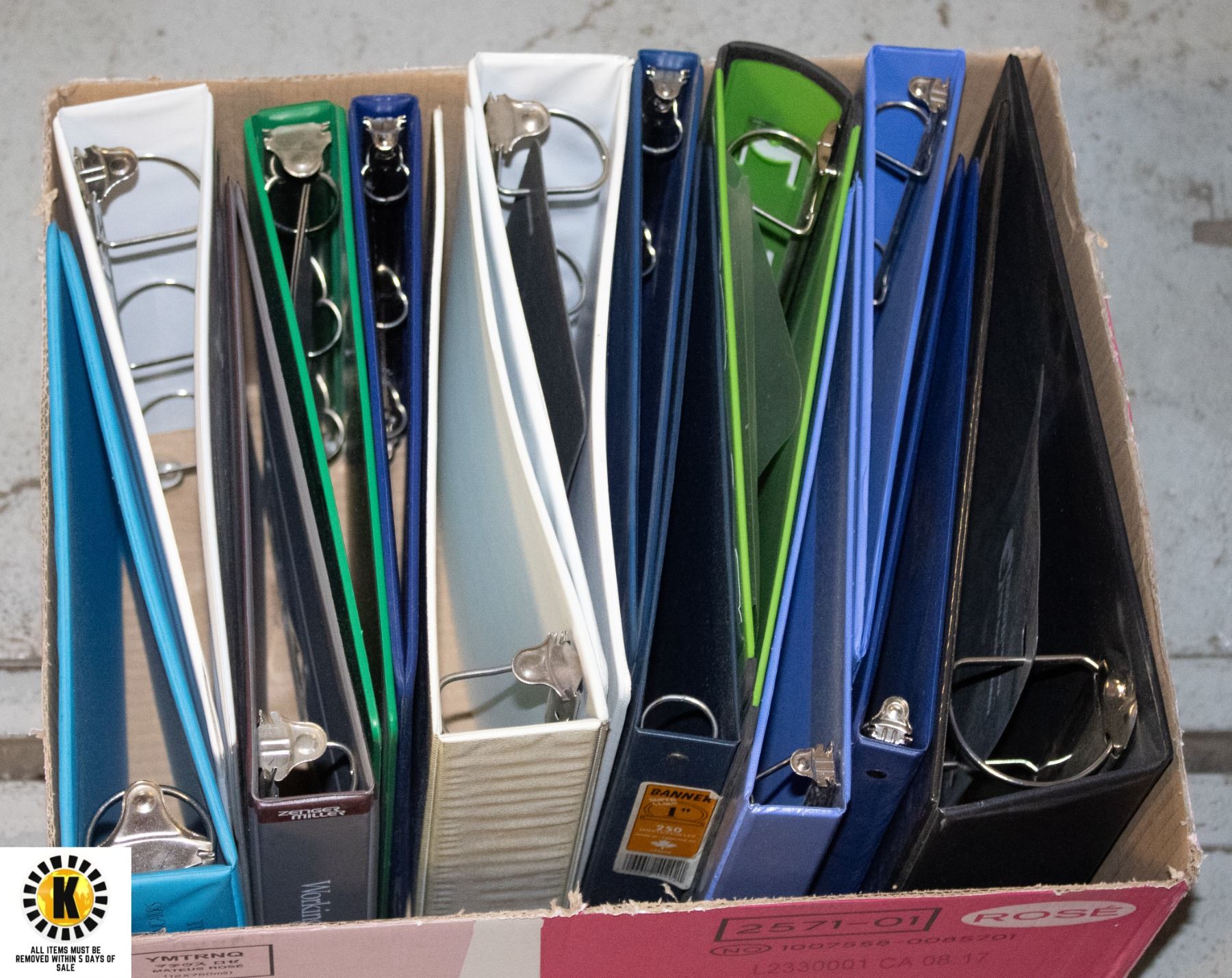 OFFICE SUPPLIES- BINDERS- BOX LOT ASSORTED