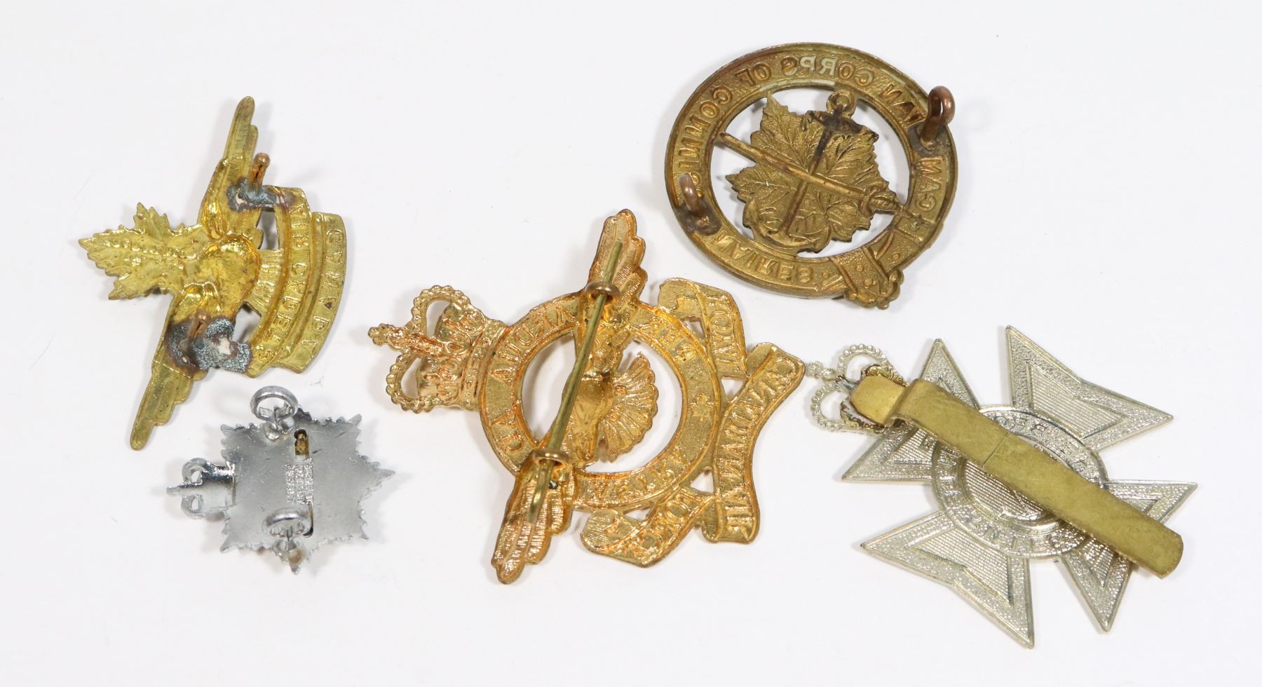 ROYAL CANADIAN ARMY SERVICE CORPS J.R GAUNT MONTREAL MAKER MARKED ON REVERSE CANADIAN CANADA MILITARY ARMY COLD WAR ERA QUEEN ELIZABETH II QEII, LOT CANADIAN CORPS OF COMMISSIONAIRES ANDBROCKVILLE RIFLES CANADIAN CANADA MILITARY ARMY COLD WAR ERA QUEEN ELIZABETH II QEII CAP BADGE, ALSO ROYAL CANADIAN AIR FORCE AIR CADETS BADGES LOT OF 2 CANADIAN CANADA MILITARY ARMY COLD WAR ERA QUEEN ELIZABETH II QEII CAP BADGE