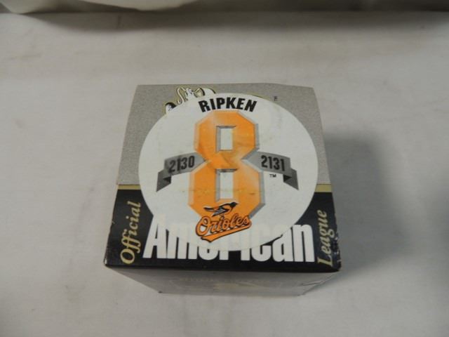 BRAND NEW, OFFICIAL AMERICAN LEAGUE BALTIMORE ORIOLES COMMEMORATIVE CAL RIPKEN BALL, AS SHOWN. NIB