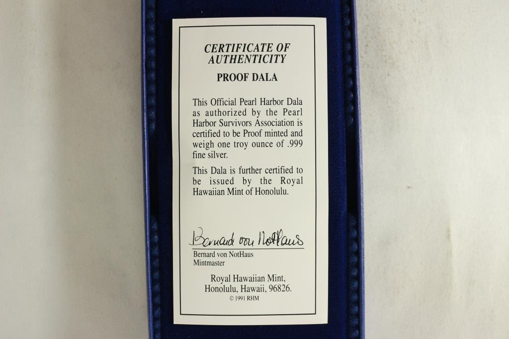COMMEMORATIVE SILVER PROOF DALA COIN, MINTED BY THE HAWAIIAN MINT OF HONOLULU, 1 TROY OZ .999 FINE SILVER, ORIGINAL MINT PACKAGING