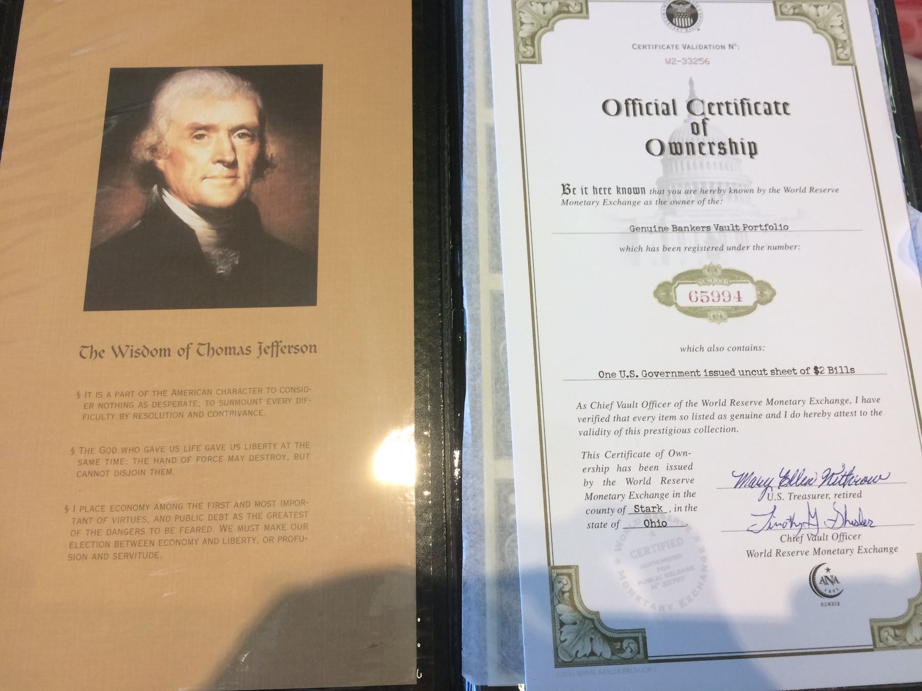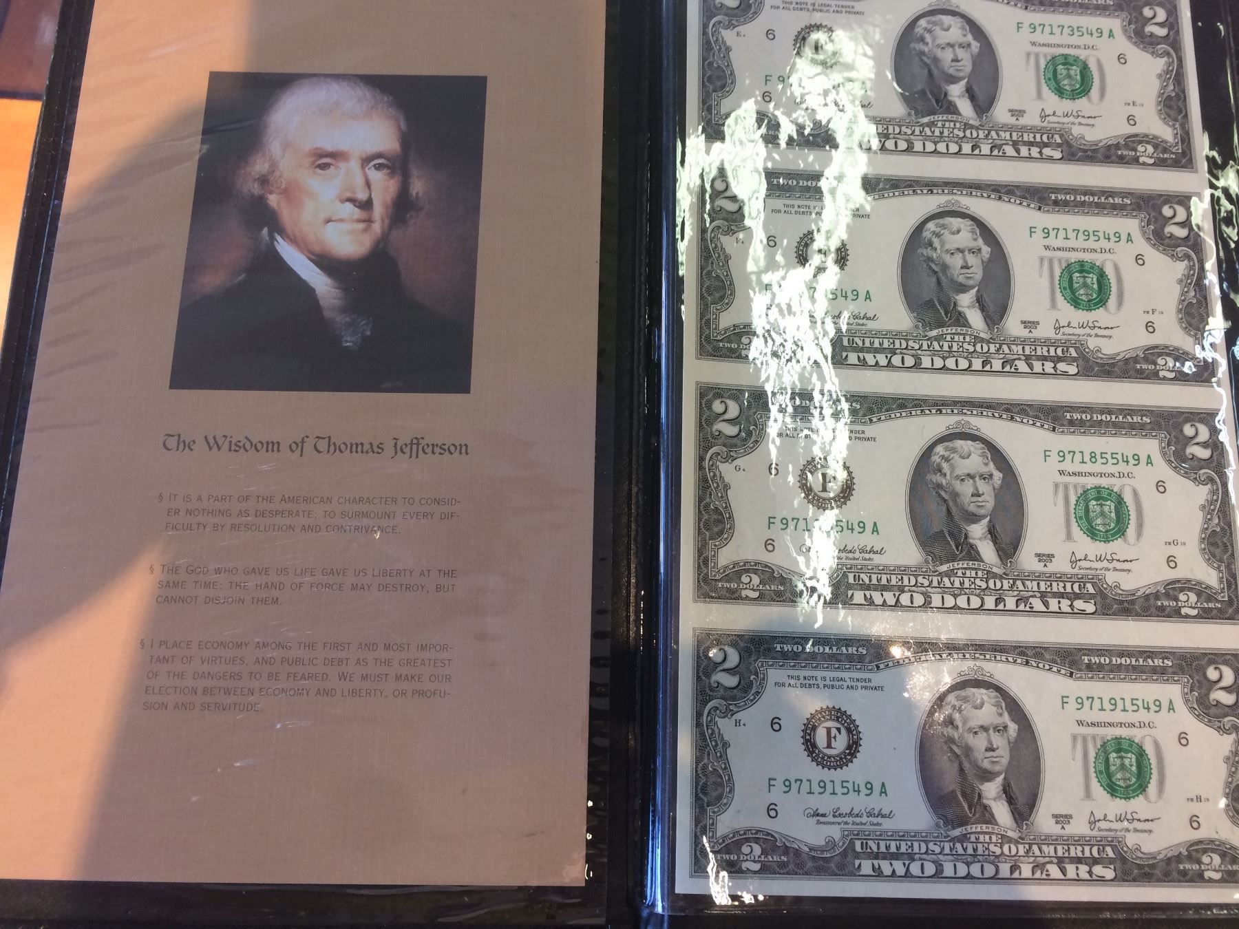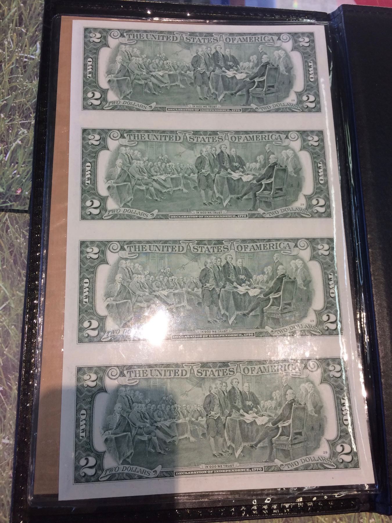 OFFICIAL USA GOVERNMENT UNCUT $2 BANKNOTE SHEET OF 4 NOTES