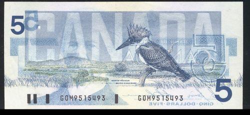 OFFSET printing error note! 1986 $5 Bonin-Thiessen GOM9515493, AU. Scarce!