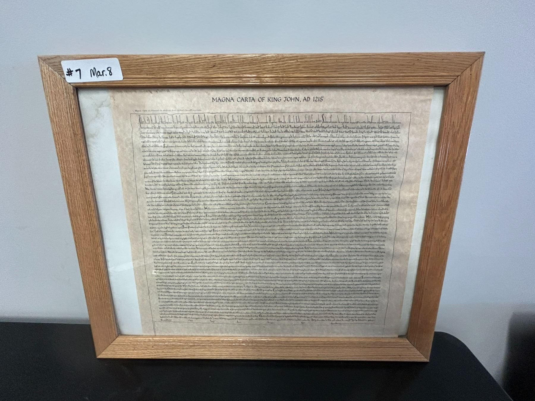 *OFFSITE* “Magna Carta” reproduction in 16” x 20” glassed frame
