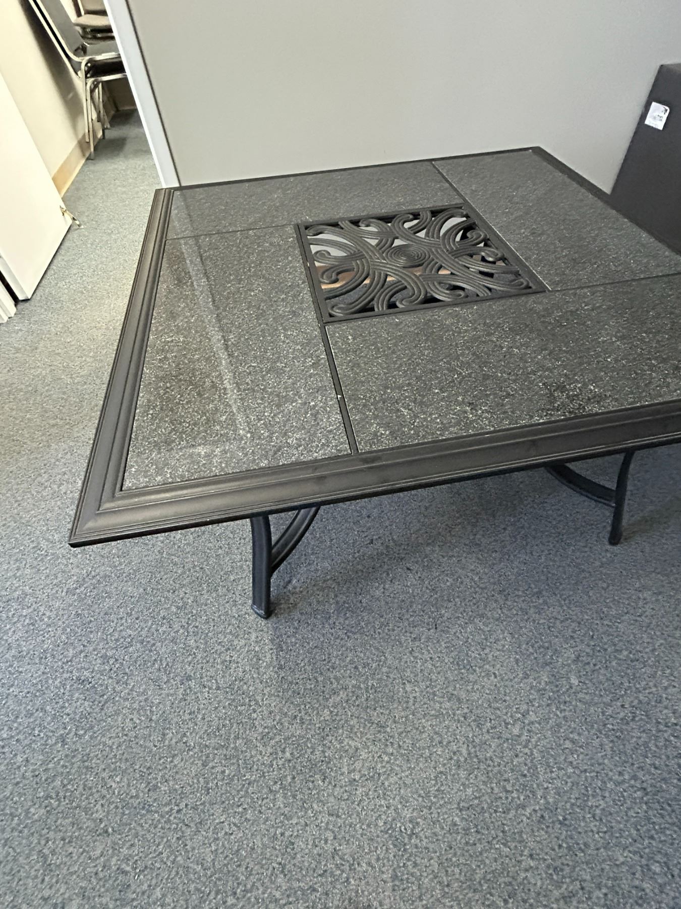 *OFFSITE* Patio table with granite inserts (one insert cracked)45”x 45”x 22”h