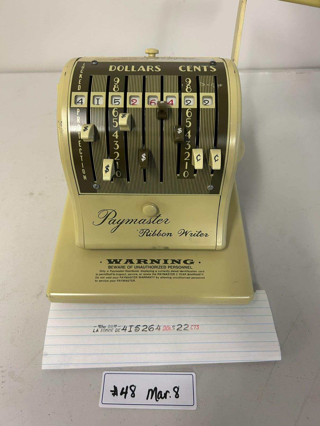 *OFFSITE* Paymaster cheque writer – good ribbon