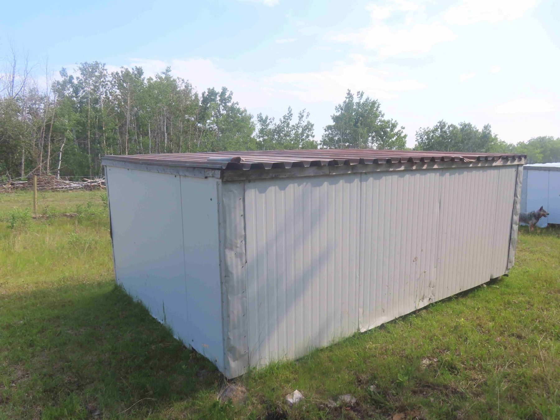 *OFFSITE WOODLANDS* Wood Framed Sheet Metal Calf Shelter on Treated Skids 12 1/2ft x 8 1/2ft *Contact: Robert 204-295-2179 or 204-582-7224 For Viewing and Pickup Arrangements, Woodlands MB.*