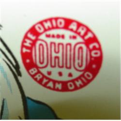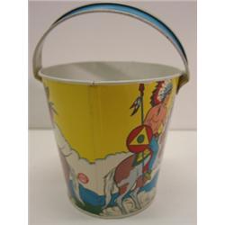 OHIO-ART CHILD'S SAND PAIL. Decorated with cowboy & Indian. Marked "Ohio-Art" on body. 6.5" H