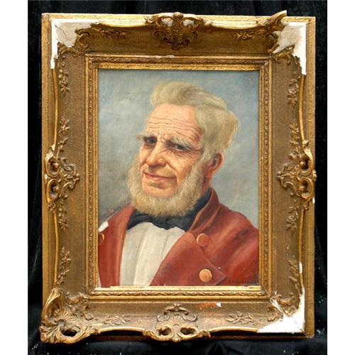 ORIGINAL OIL ON BOARD - GOOD BOARD,FRAME WITH SOME MISSING FRAGMENT - AN EXCEPTIONAL PORTRAIT OF AN OLD MAN. THIS MAN HAS A CORDIAL FACE, UNDER HIS WRINKLES WE CAN READ A JOYFUL LIFE AND MAY BE A LIFE OF BIG JOB. HE WEARS A RED JACKET. THIS MAN HAS TWO VERY EXPRESSIVE BLUE EYES AND THIC BROW.HE HAS A FEAR SMILE ALMOST HAPPY.