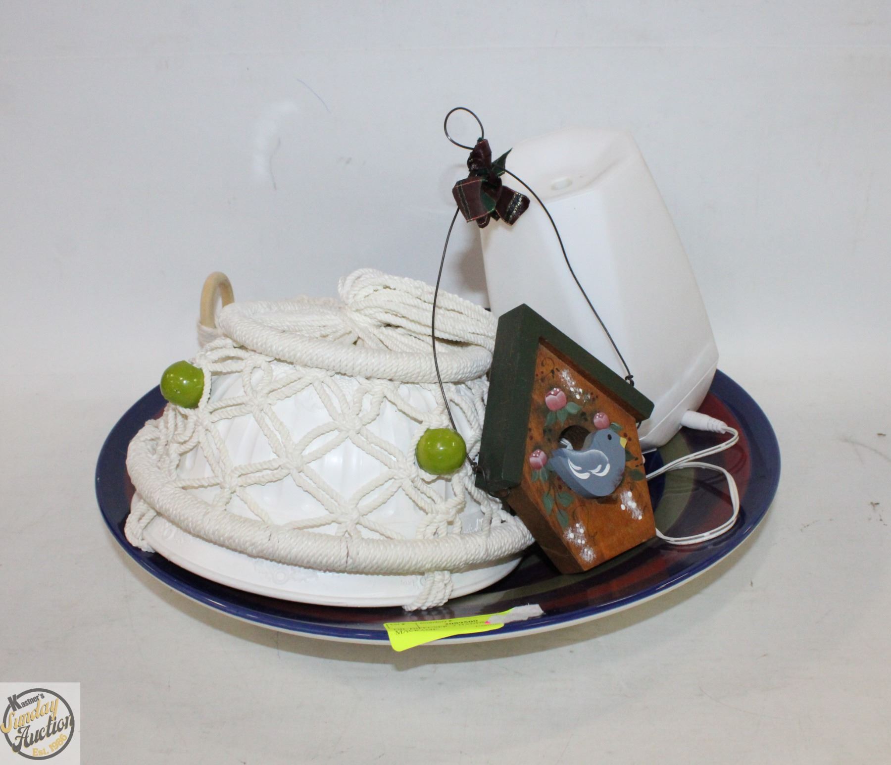 PLANTER CEILING MOUNTABLE HANGERS + HANDPAINTED BIRDHOUSE WALL HANGING + DECOR PLATTER/LARGE BOWL **ALL ITEMS MUST BE REMOVED BY 5PM SATURDAY, AUGUST 16TH 2025. ALL REMAINING ITEMS WILL BE SUBJECT TO A $6.00 PER DAY STORAGE CHARGE. ANY ITEMS REMAINING AFTER MONDAY, SEPTEMBER 1ST 2025 WILL BE CONSIDERED FORFEITED. NO REFUNDS WILL BE ISSUED FOR FORFEITED ITEMS. TO SCHEDULE A PICK UP APPOINTMENT CLICK HERE
