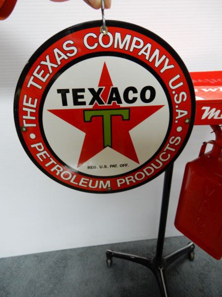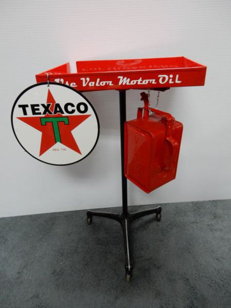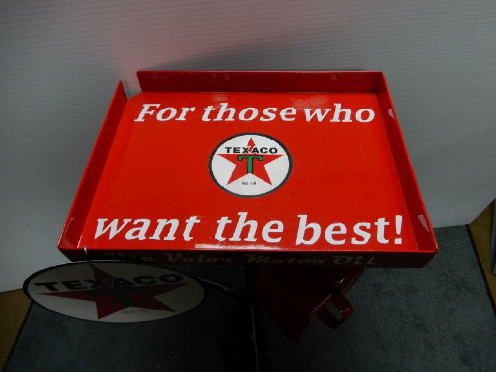 OIL DRAIN CART PROFESSIONALLY RESTORED TO TEXACO 20" X 15" X 35" - DSP SIGN & VALOR FUEL TANK LOCATION: LOWER RIGHT