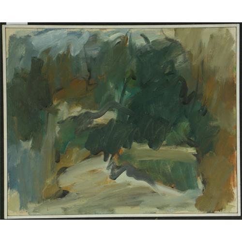 OIL ON CANVAS 16'' x 18''. Eugene Pizzuto (1925-2004), WA. An Abstract Composition in Greens and Rusts. Unsigned. Placed in a fitted frame. A longtime UW painting professor, Pizzuto was well known for his abstract landscape paintings. More info in the white binder.