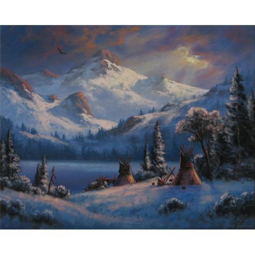 OIL ON PANEL 16'' X 20'', Heinie Hartwig (1937-), CA. ''Winter Encapement''. Signed lower right. Title on the verso. Placed in a contemporary gold frame. Hartwig utilizes a traditional ''old world'' style of color and light in his contemporary studies of the West. More info. in the white binder.