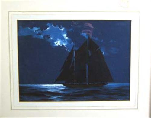 OIL, HUNTER WOOD, (B.1908); Sailing vessel at sea at night, signed, lr, H. Wood, 10"h x 14"w, framed, under glass