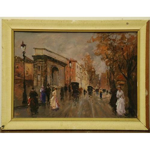 DESCRITION: IN PARIS? STREET. The painting seems to be inspired by some De Nittis searches about the theme of the road, almost a metaphor of flowing life, animated by travellers, animals and trees. The raining atmosphere is due bi grey-violet colours. The vibrant colour, the lively brushstrokes make the painting a true manifest of daily, valid always and in every age. The delicate manufacture make it a painting suitable for any environment. The impressionistic style, the coloured touches give the painting a touch of happiness.