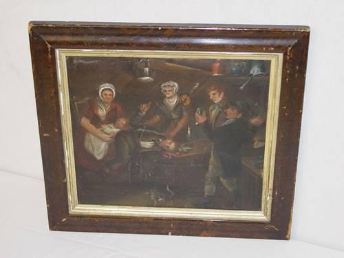 OIL ON ARTISTS BOARD OF MERRY MAKERS IN AN ENGLISH PUB, FRAMED (10 1/4" X 11 3/4") - SURFACE WEAR & SCRATCHES;