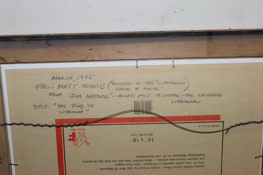 OIL ON BOARD - 17.5" X 21.5" -1995 - PAINTED BY JIM NATONSKI AS A GIFT TO MATTHEW ORANTE - TITLE "THE ROAD TO LITHUANIA" - MINT