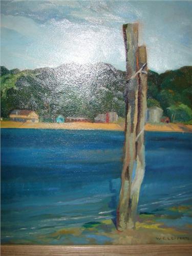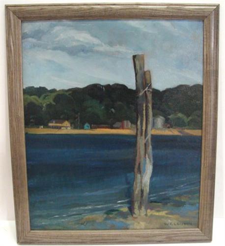 WILAMINA LEFFERTS OIL ON BOARD PAINTING. Depicts a river & shoreline scene. Signed in lower right “W.E. Lefferts”. 23” x 26” framed.