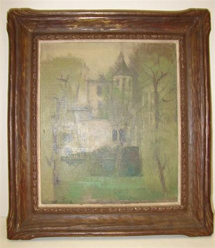OIL ON BOARD PAINTING. Depicts a castle with tree scene. Signed in lower left “Anne Poor”. 16” x 18” framed.