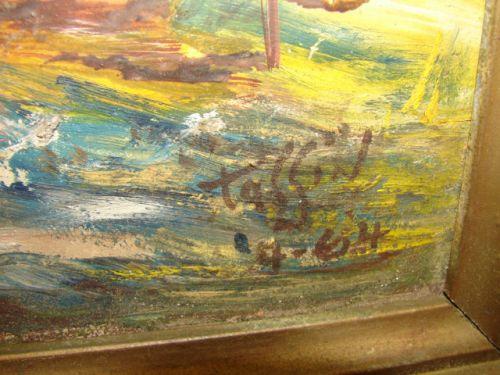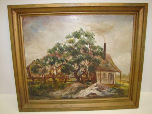 OIL ON BOARD PAINTING. Depicts a landscape scene with cabin & tree. Signed in lower right “Passin/4-64”. 23.25” x 19.75” framed.