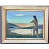 OIL ON BOARD "UNTITLED-NATIVE OVER LOOKING THE LAKE" SIGNED LOWER LEFT WADSWORTH 16" X 11"