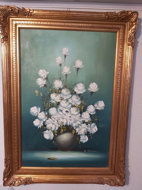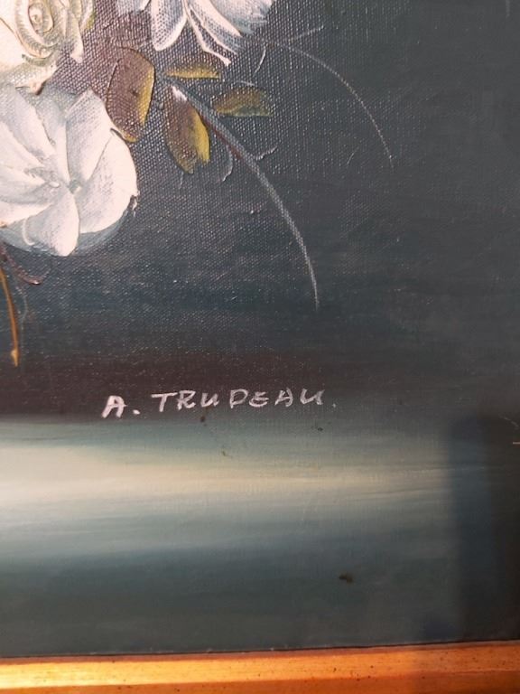 OIL ON CANVAS BY A TRUDEAU FRAMED 32" X 44" CANVAS IS 24" X 36" 50-60 YEARS OLD