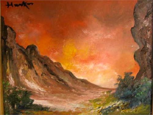 OIL ON CANVAS BY PETER HURKOS; Untitled, 11" x 14", inscribed and dated on verso, October 4, 1977, framed